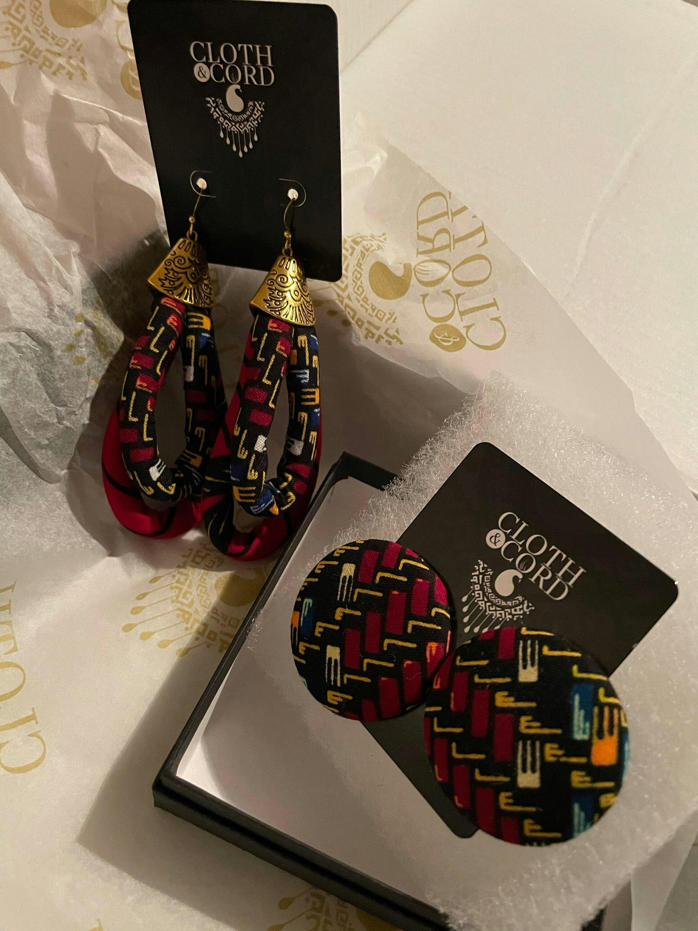 African Cloth Earrings for Women | Red Ankara Hoop Earring | Mini Double Loop Earring | Ketepa Print Earring | African Print Jewelry Red | Cloth & Cord