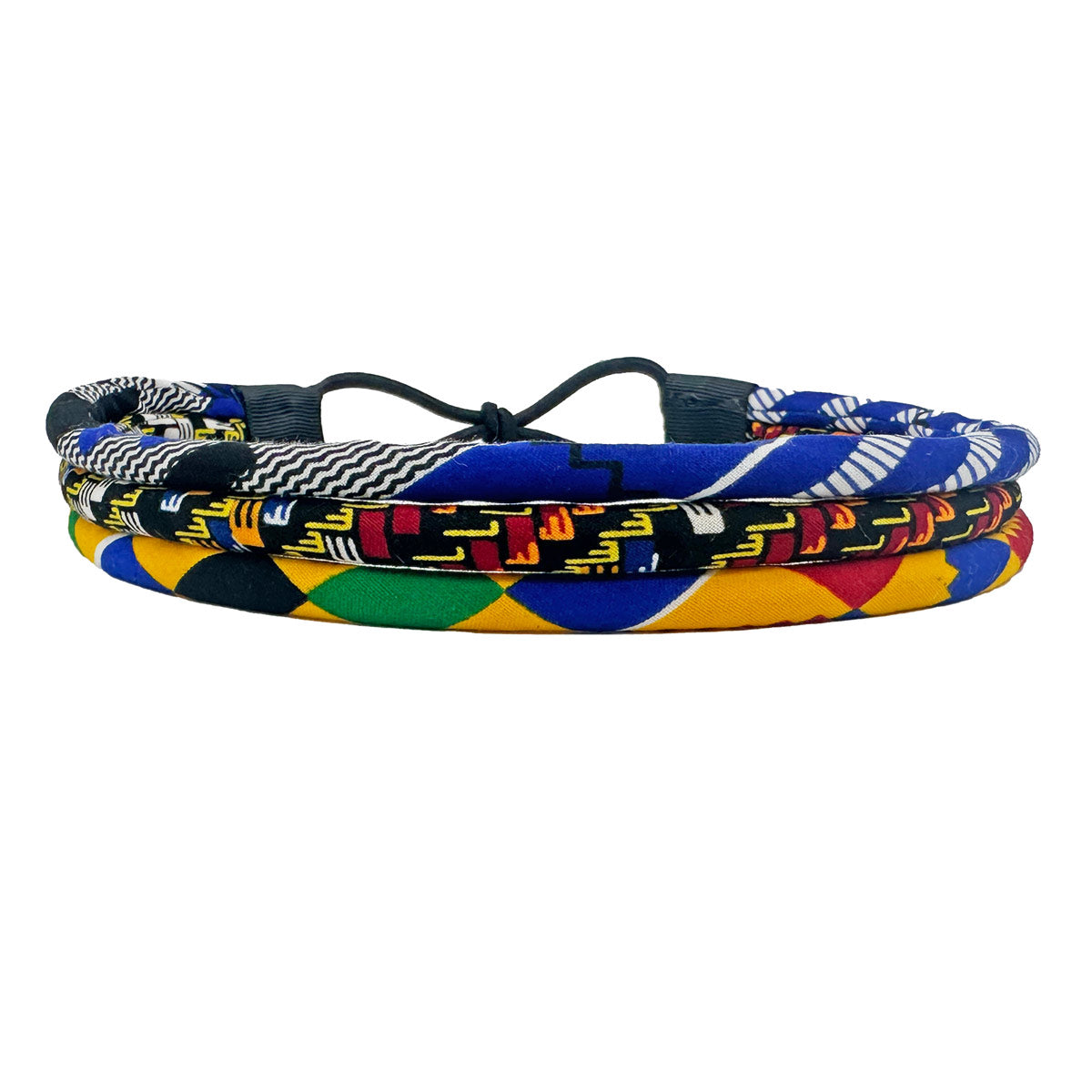 Blue Kente 3-Strand African Print Headband | African Headband | Blue Yellow Red | Ankara Hair Accessories | Cloth&Cord