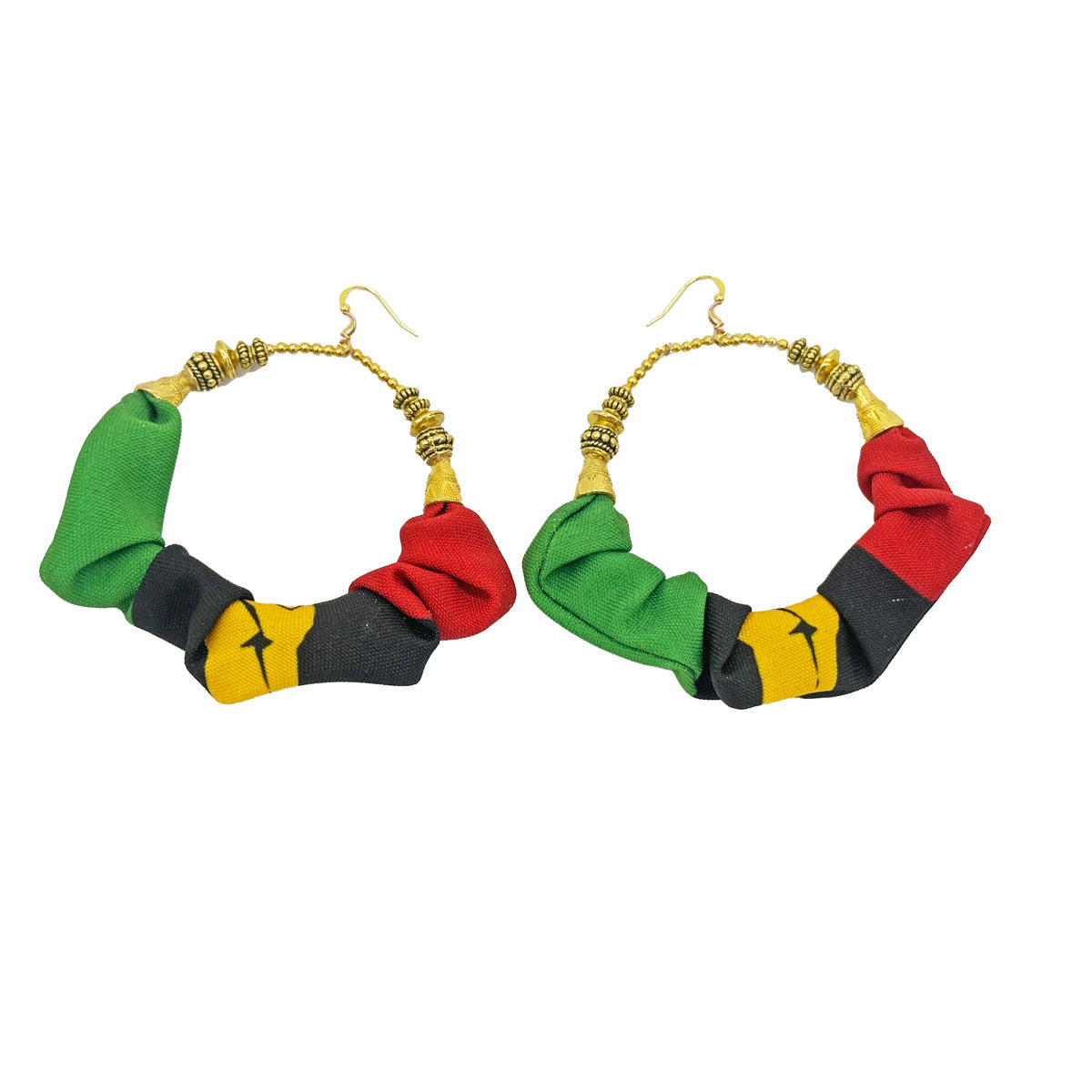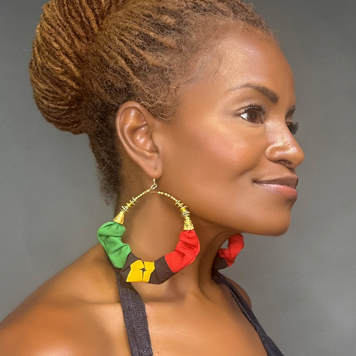 Pan-African Power Hoop Earrings | Pan-African Flag Earrings | Red Green Black Yellow Afrocentric Earrings | Cloth & Cord