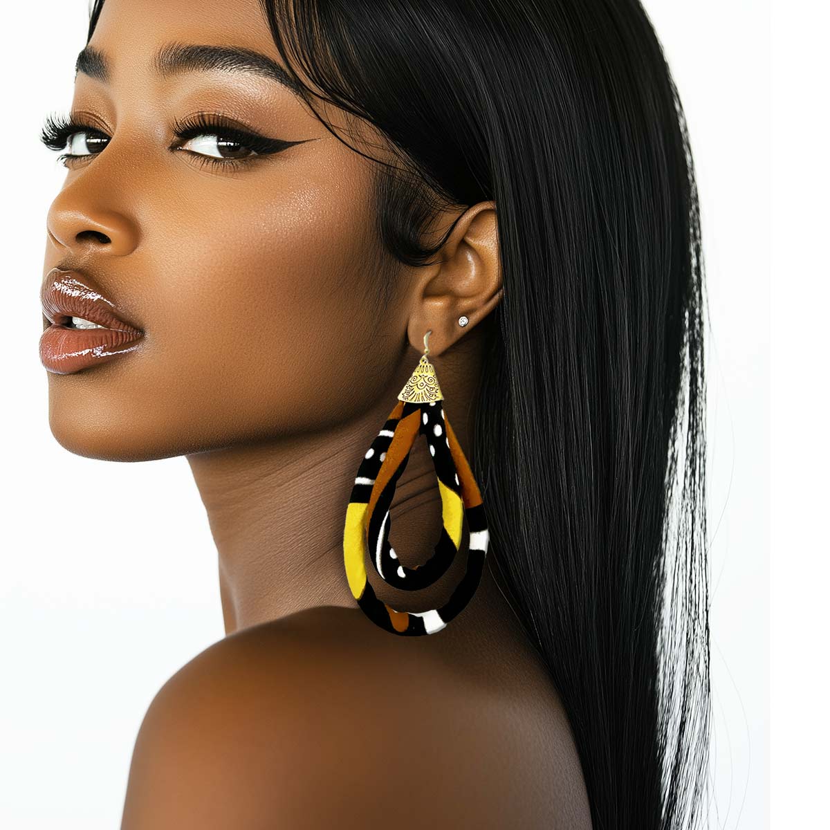 African Mud Cloth Print Earrings | Brown, Yellow, Gold, Black Earrings | Large African Fabric Earrings | Cloth & Cord
