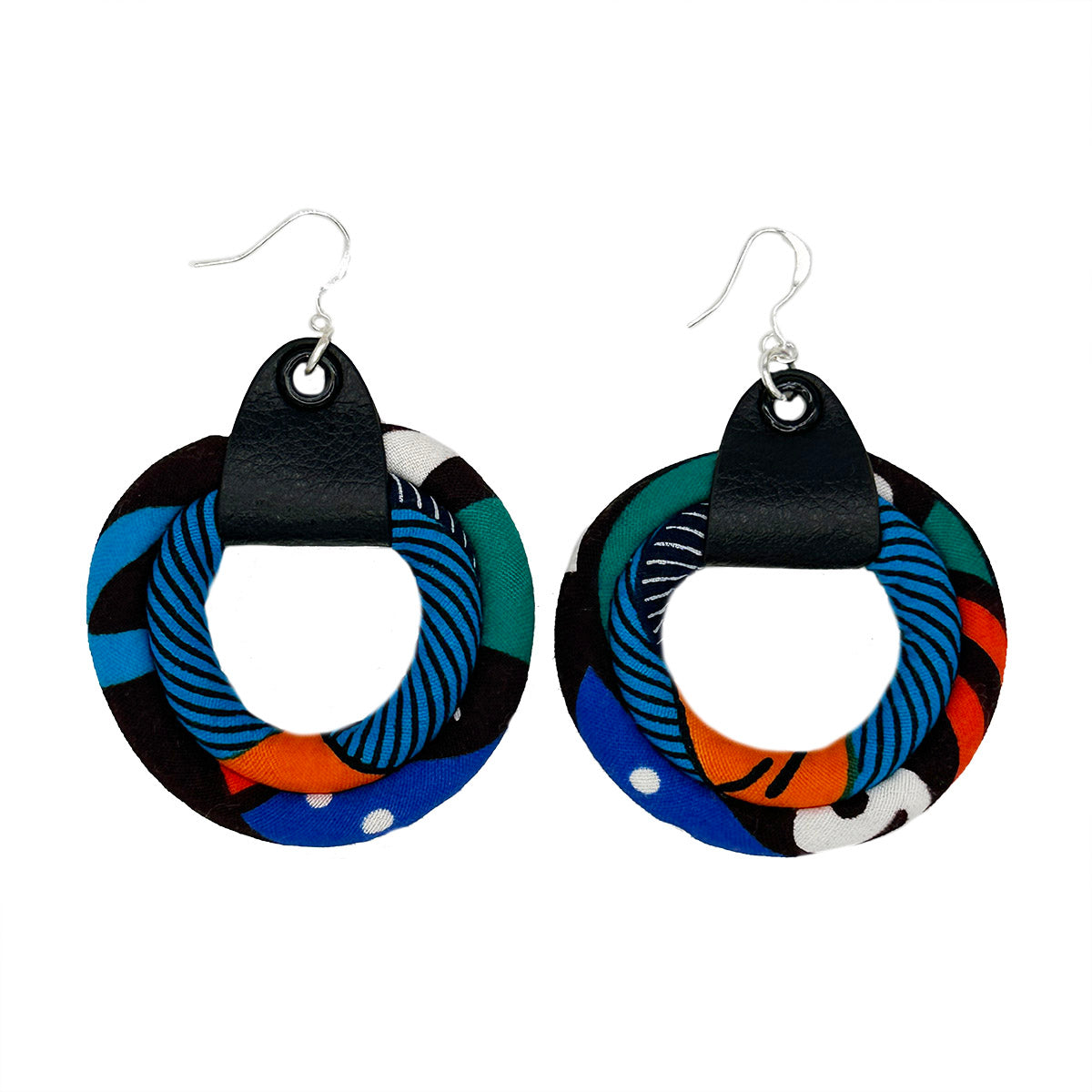 Small Geometric Multi-Color African Hoop Earrings | Kente Print Earrings | Mud cloth print Earrings | Afrocentric Earrings