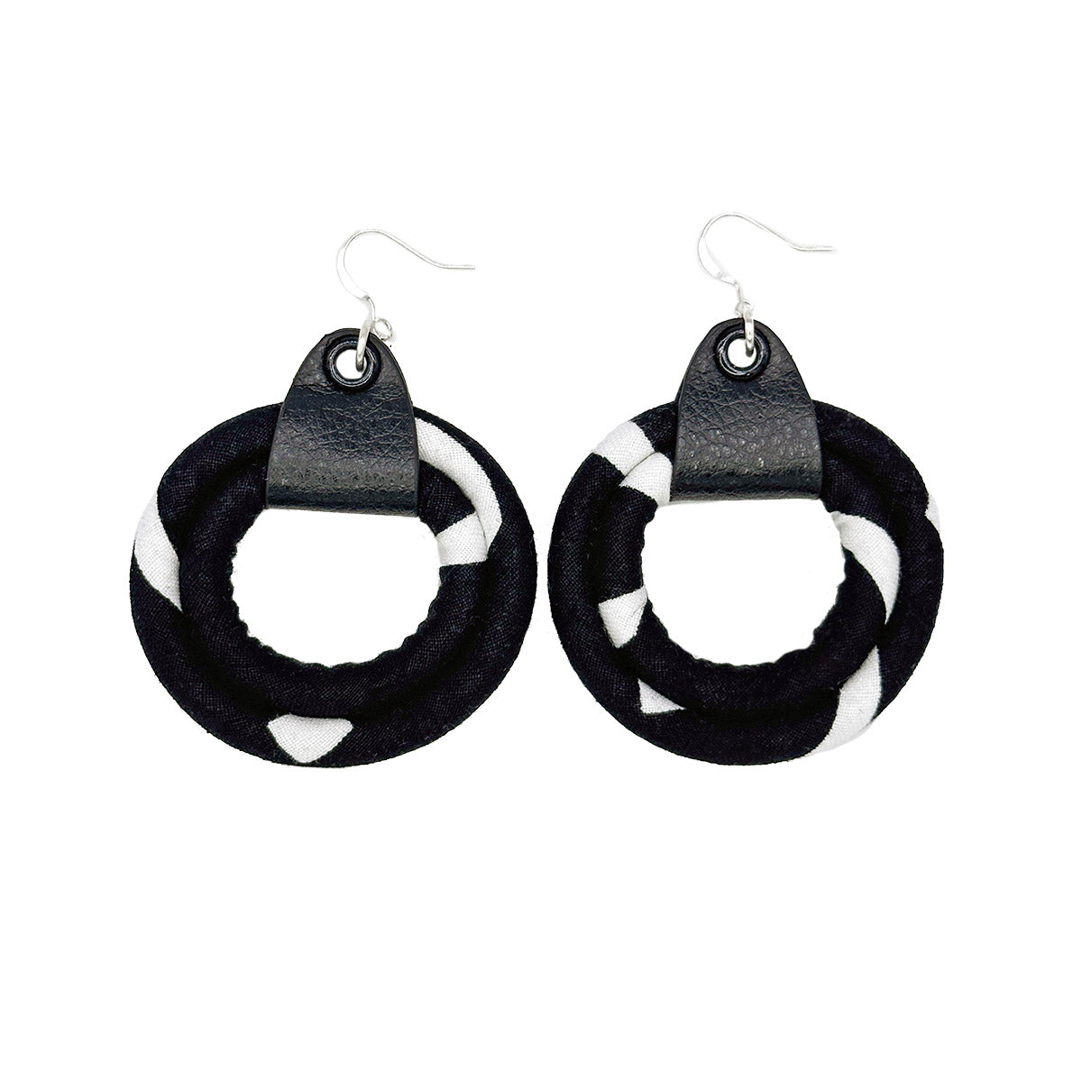 Small Black & White African Hoop Earrings | Kente Print Earrings | Mud cloth print Earrings | Afrocentric Earrings