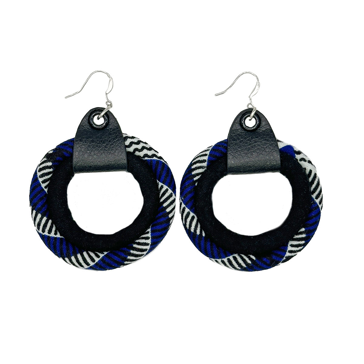 Blue Kente African Hoop Earrings | Kente Print Earrings | Mud cloth print Earrings | Afrocentric Earrings