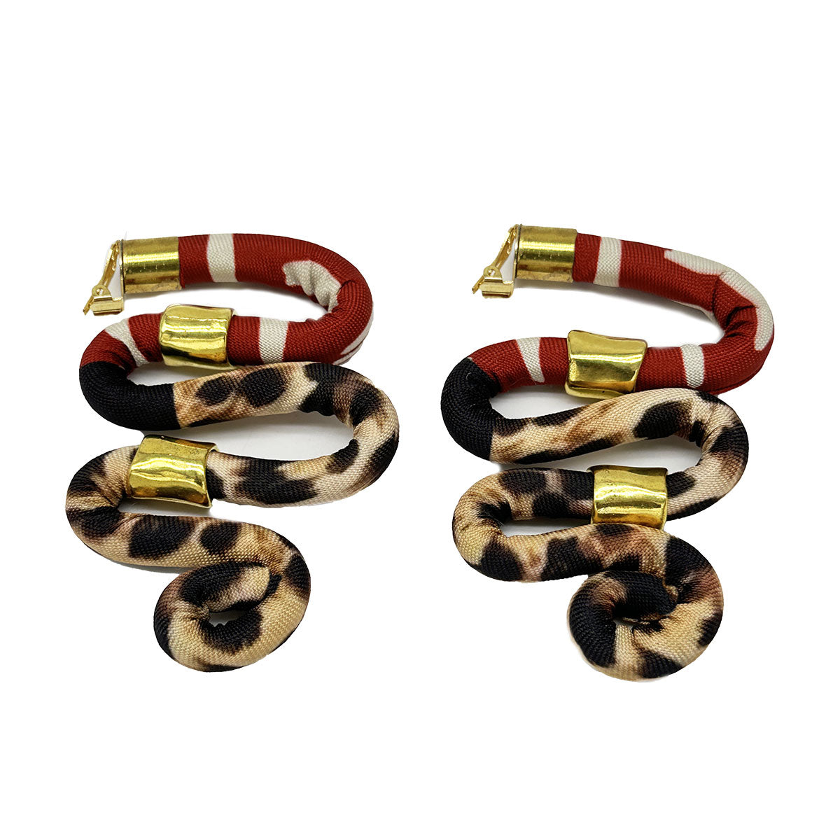 Red and Leopard Print Tribal Earring Tube Bead. This earring is bendable, create your own new shape!
