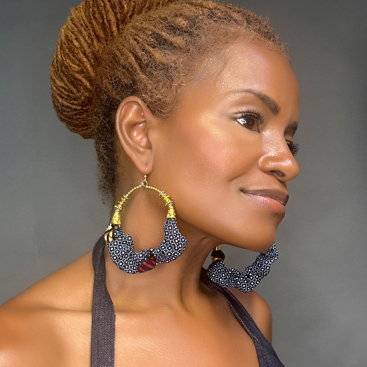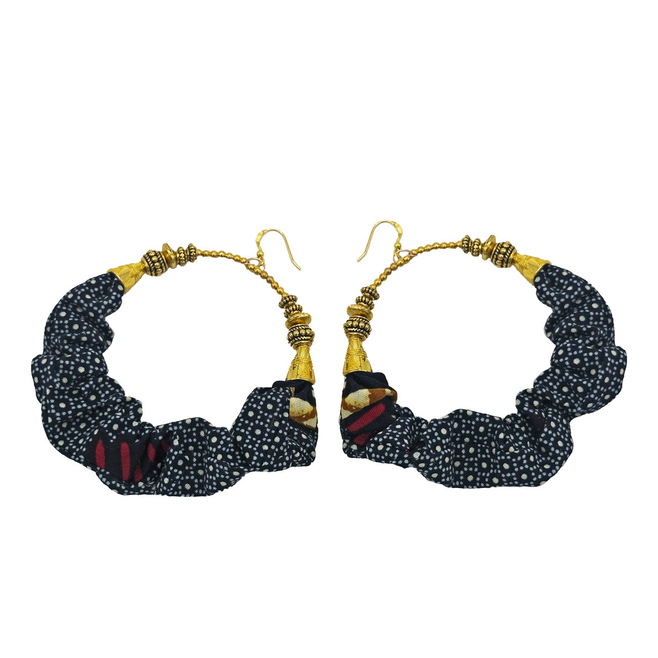 The Indigo Echo Hoops are where subtlety meets strength. Designed with scrunched blue-and-white dotted fabric and a bold accent of deep red, these earrings command attention with a quiet confidence. They’re versatile enough for everyday wear but distinct enough to make a statement.