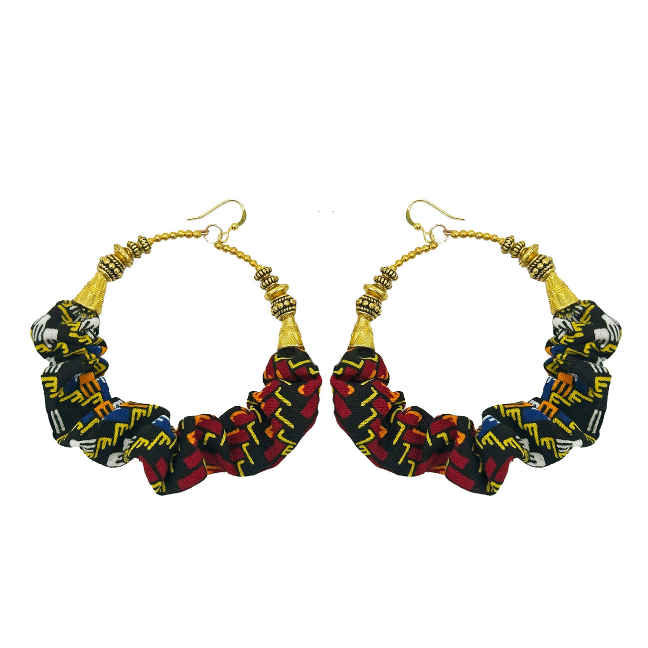 African Ketepa Print Hoop Earrings | Ankara Print Hoop Earrings | Red Blue Afrocentric Earrings | Cloth & Cord