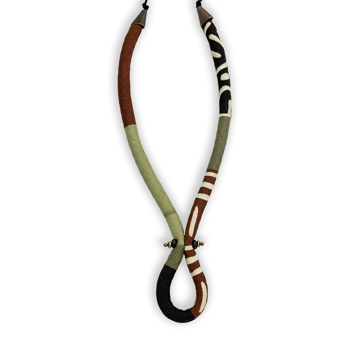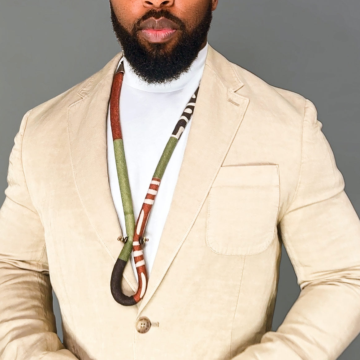Fern Green Mens African Tie and Solid Print Mixed Cord Tie Necklace | Mens Olive Green African Print Necklace