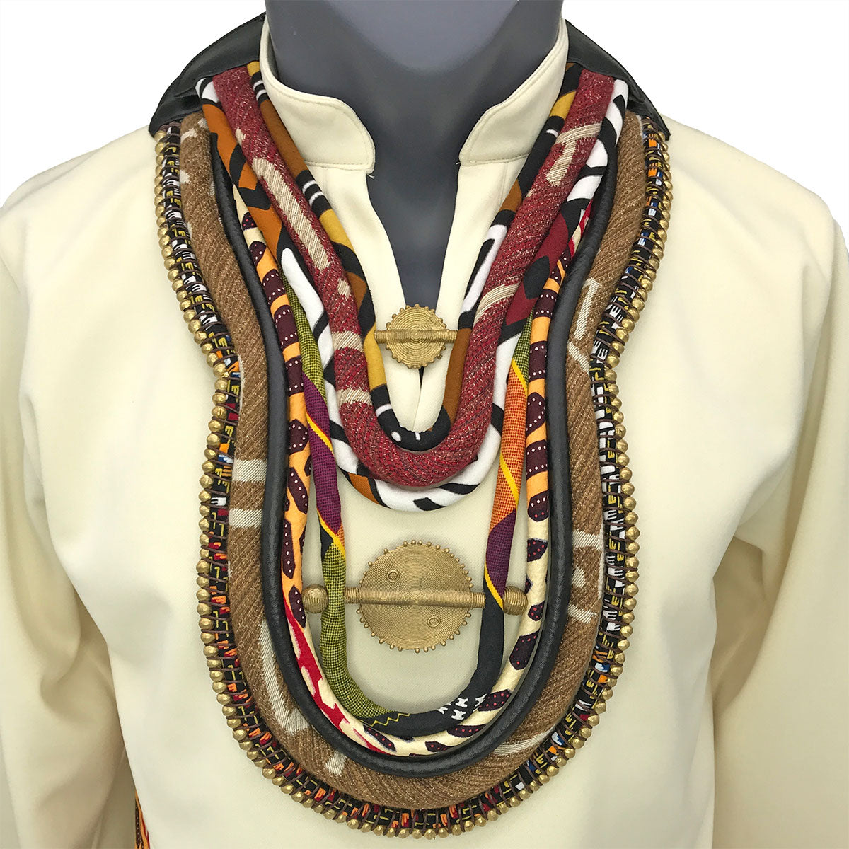 Tan Men's African Statement Necklace | King | African Bib | Ghana Sun Baule | African Men's Necklace | Tribe