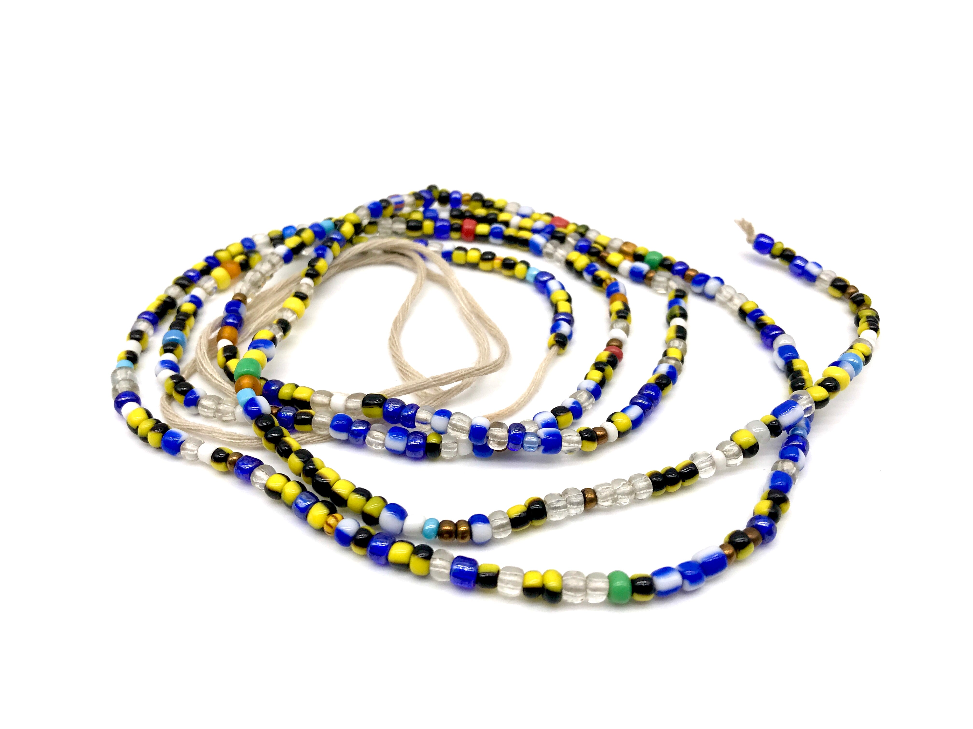 Yellow/Black/Blue/White Multicolor Waist Bead for Women | Waist Beads | Large Seed Beads | Afrocentric | Cloth & Cord
