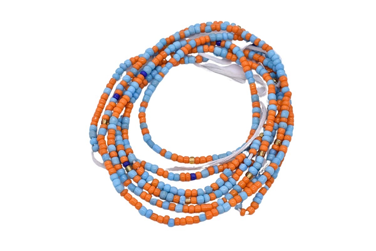 Sky/Orange African Waist Beads for Women | Waist Beads | Small Seed Beads | Afrocentric | Cloth & Cord