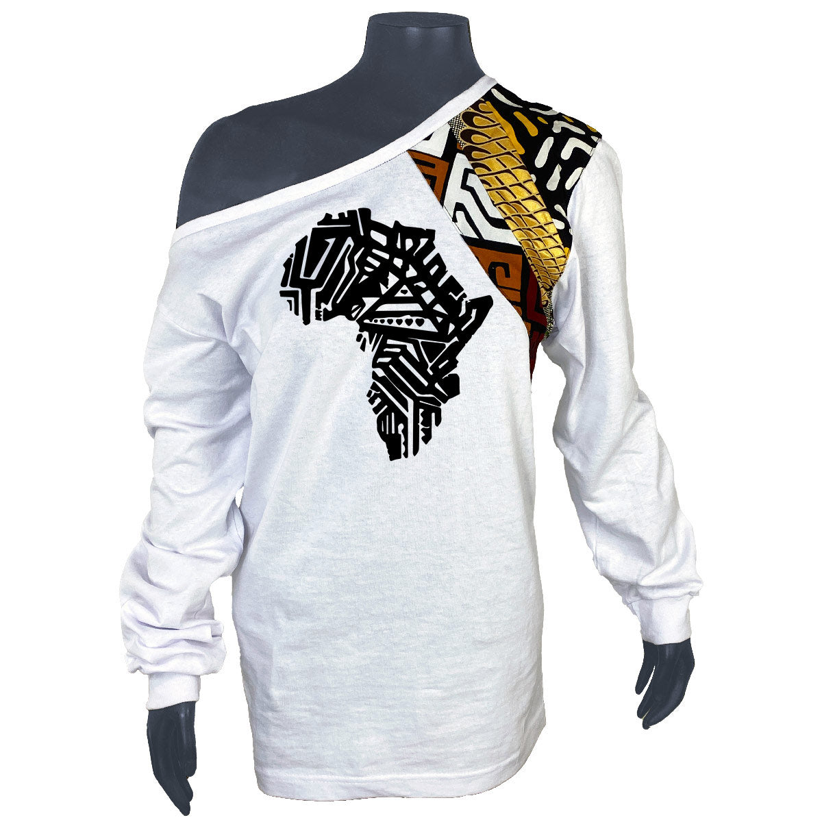 Women's White Africa Map Long Sleeve Cold Shoulder Tshirt |Unique Shirt | Black History Month T-shirt | African | Unisex Shirt | Black Owned Business | Cloth & Cord