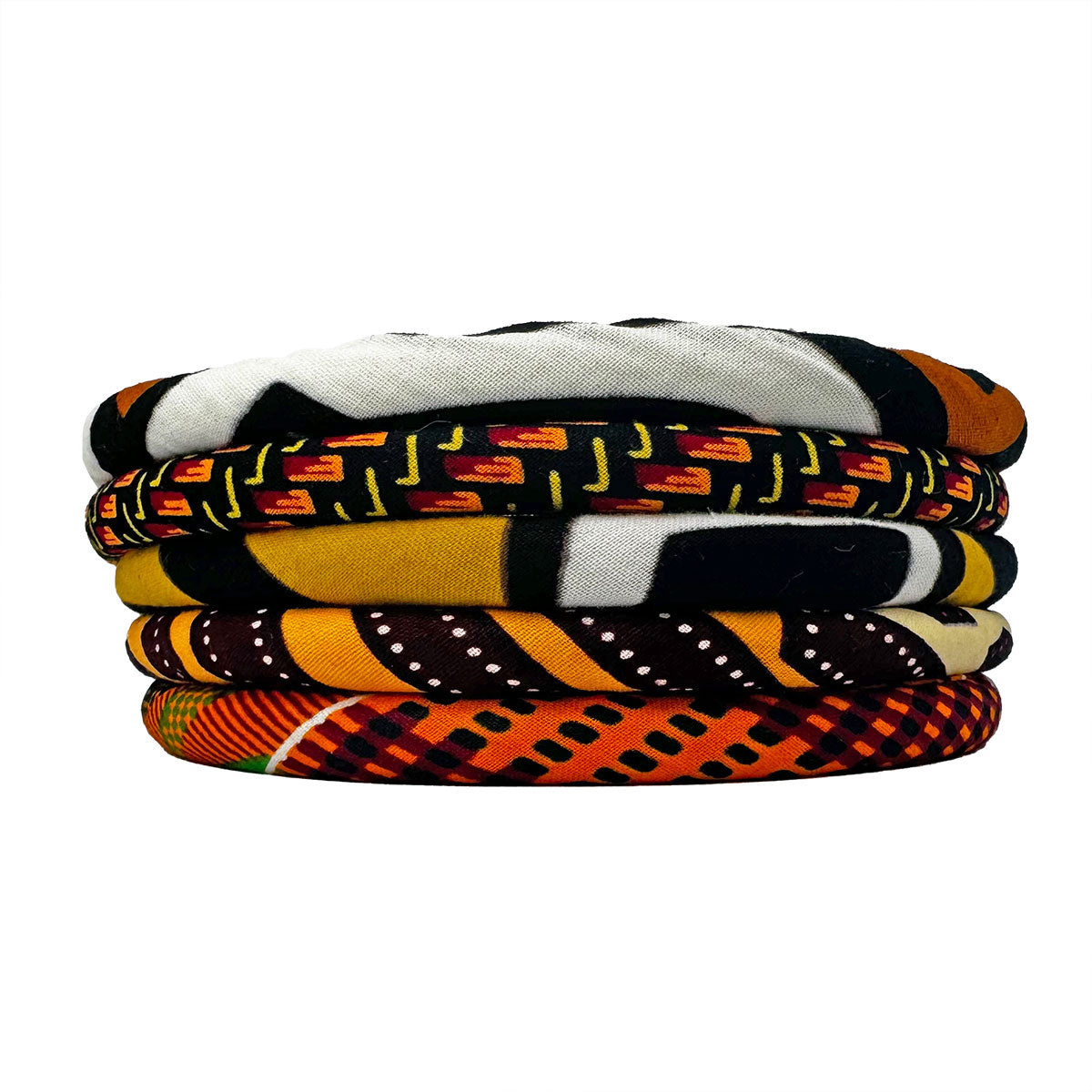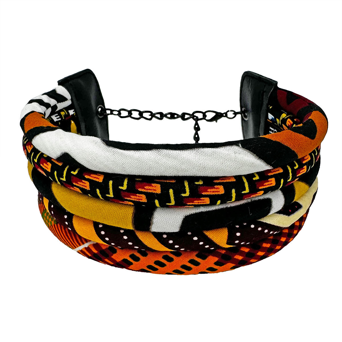 Collier ras-du-cou à 5 rangs en imprimé africain | Collier ras-du-cou marron, blanc, orange et doré | Collier ras-du-cou africain | Colliers ras-du-cou pour femme | Tissu et cordon