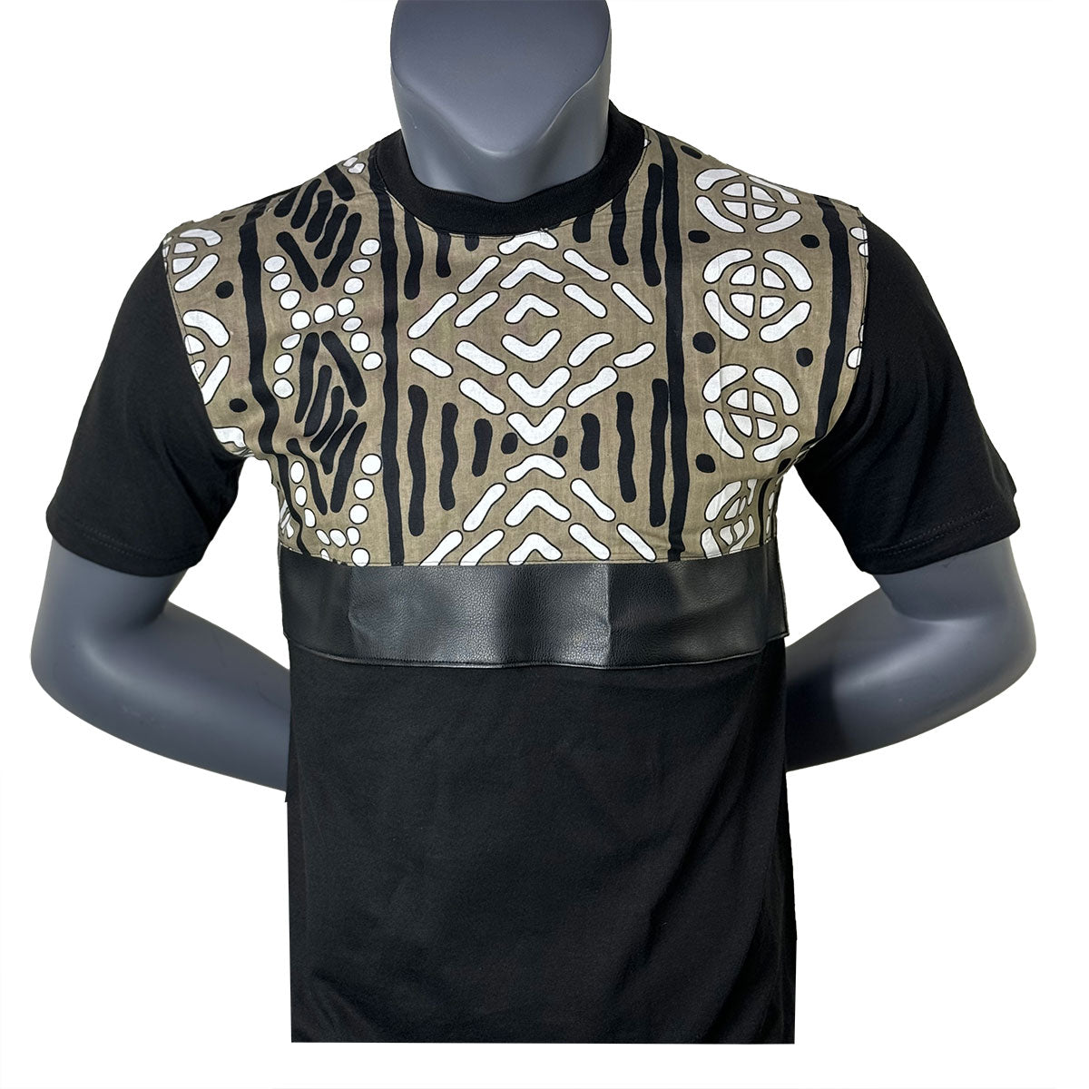 T-shirt décontracté unisexe à manches courtes pour homme, avec appliqué à imprimé africain en similicuir gris, blanc et noir. Fabriqué à la main en interne avec du coton wax africain. Ce t-shirt C'est une excellente option pour une tenue décontractée et originale. Associez-la à un jean ou glissez-la dans un pantalon habillé avec vos chaussures décontractées préférées.