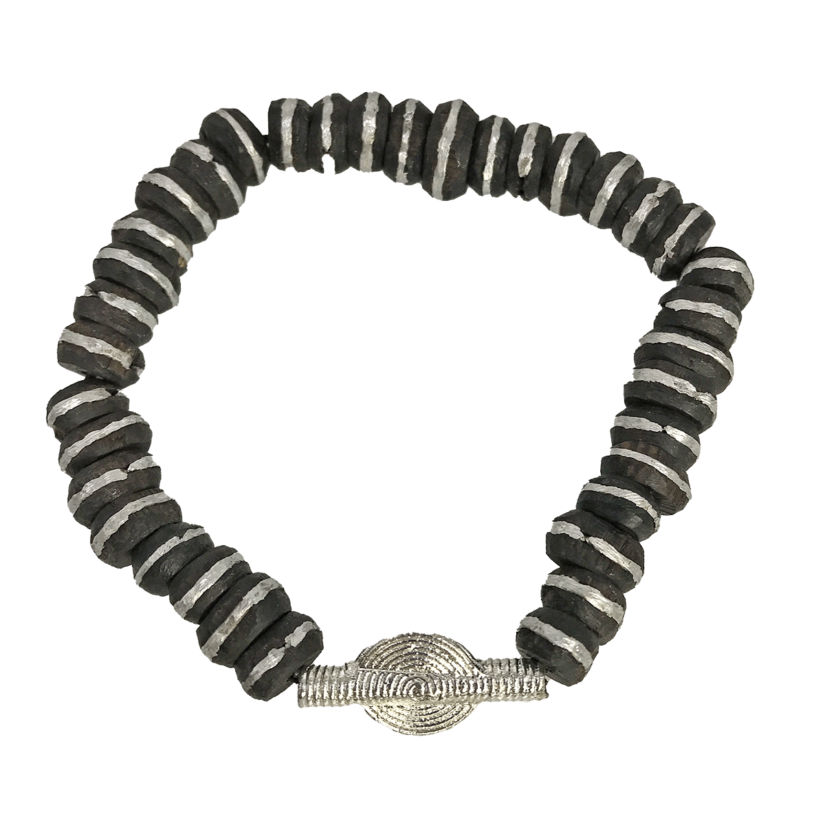 Bracelet en perles de bois marron foncé et argent | Afrocentric | Tissu et cordon