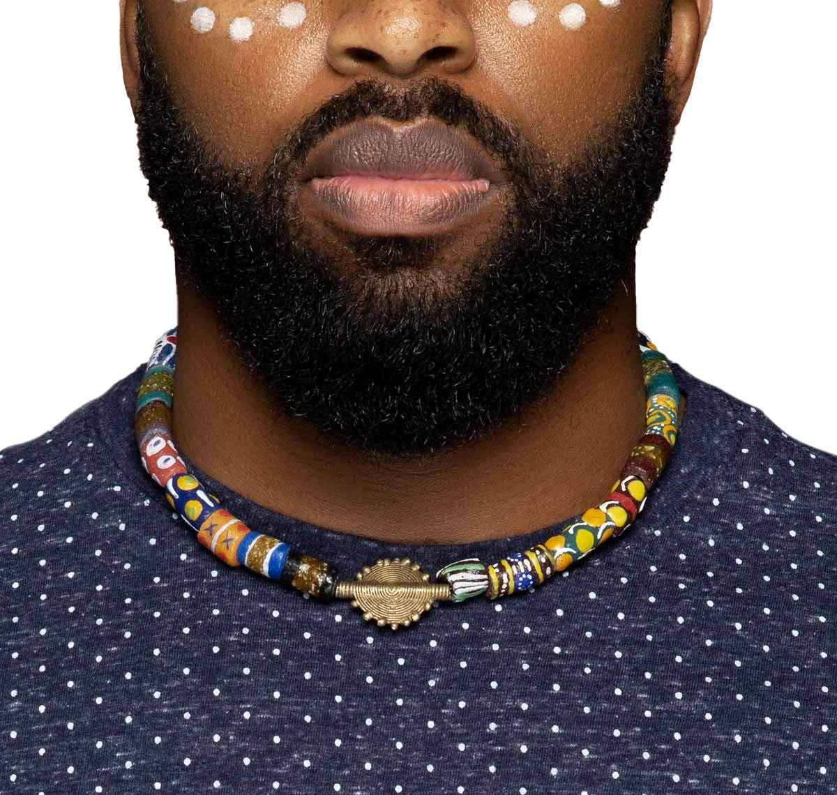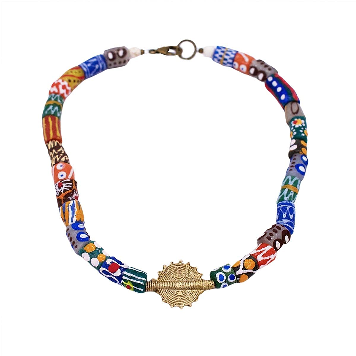Mens Krobo Glass Bead Necklace w/ Sun Baule from Ghana – Unisex| Cloth&Cord