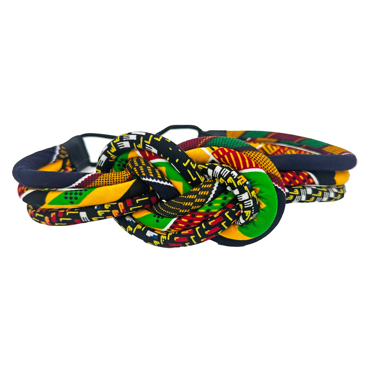Knotted Sankofa Kente Headband |African Head Piece for Women| 3 Strand Yellow Black Red Green Knotted Headband| Afrocentric headband | Cloth & Cord